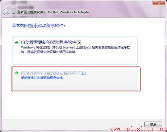 4、選擇“瀏覽計算機以查找驅動程序軟件”。