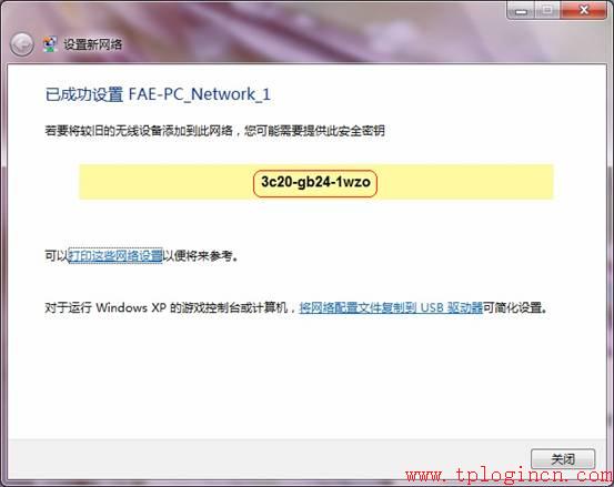5、成功設置無線路由器并完成無線連接,下圖紅框所示為自動生成的無線密碼。