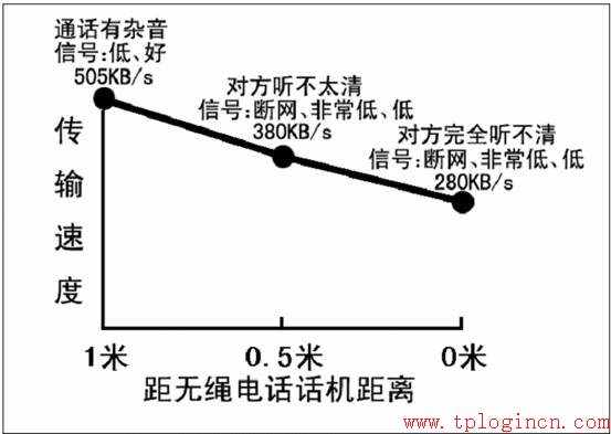 來看看我們的試驗:測試系統還是 802.11b 的無線 FTP 傳輸。正常情況下傳輸速度為655KB/s。測試者手持無繩電話坐在無線終端(帶有 802.11b 無線網卡的筆記本電腦)前,接聽電話,無線傳輸速度下降為 505KB/s,電話聽筒內有輕微雜音;將無繩電話靠近無線網卡到 0.5 米處,速度下降為 380KB/s,無線網絡信號時斷時續,聽筒內雜音變大,通話對方抱怨聽不太清說什么;無繩電話與無線網卡0距離時,無線網絡頻繁斷網,平均速度下降為 280KB/s,對方完全聽不清我們說什么。
